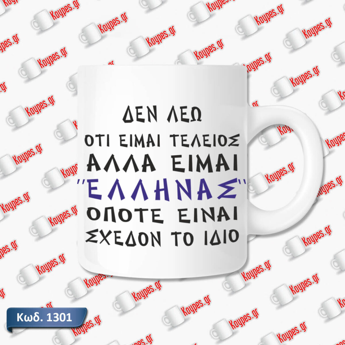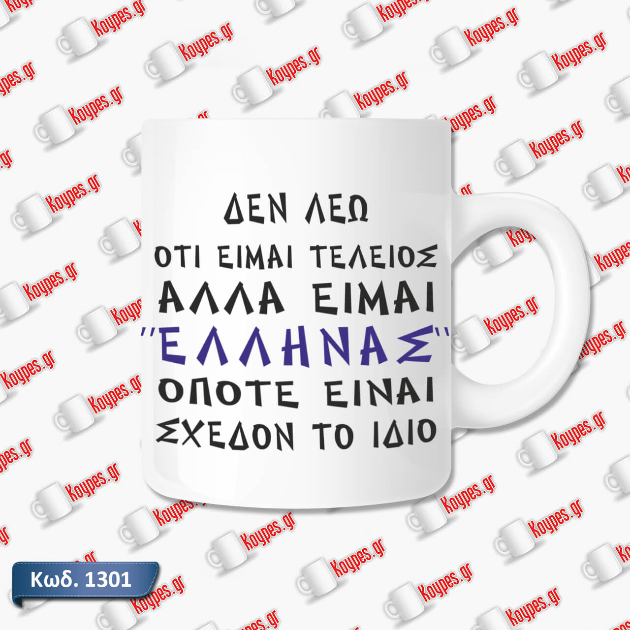 Κωδικός προϊόντος: 1301 Κατηγορίες: Αστείες κούπες, Ελλάδα Ετικέτες: δεν λέω ότι είμαι τέλειος, Είμαι Έλληνας, ελλάδα, κούπα για καφέ, κούπα με ατάκες