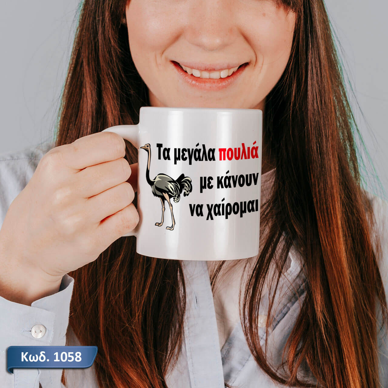 Κούπα με σχέδιο Τα μεγάλα πουλιά με κάνουν και χαίρομαι.
